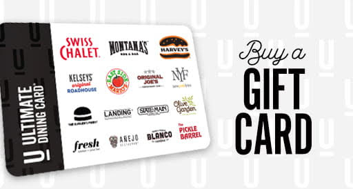 Ultimate Dining Card is the gift card to use at some of Canada’s most iconic restaurants including; Swiss Chalet, Harvey's, Montana’s, Kelseys, East Side Mario's, New York Fries, Original Joe's State & Main, The Burger's Priest, The Pickle Barrel, Bier Markt, Elephant & Castle, Fresh Kitchen & Juice Bar, Anejo Restaurant, Blanco Cantina, and the Landing Group of Restaurants. Whether you are gifting it for a birthday, holiday celebration, or as a thank you, to your Mom, Dad or special grad the Ultimate Dining Card makes it possible to give the gift of a night out they're sure to enjoy.